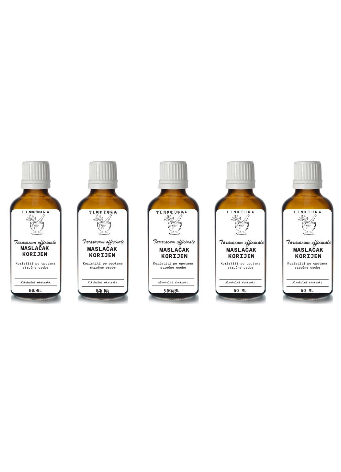 - Naši ekstrakti od korijena maslačka su dostupni u tri različite varijante, i to kao: alkoholna tinktura, glicerat (bezalkoholna tinktura), i kao macerat u maslinovom ulju, kako bi zadovoljili vaše različite potrebe:Alkoholna tinktura: Alkoholna tinktura od maslačka izrađena je od pažljivo odabranih korijena maslačka maceriranih u visokokvalitetnom alkoholu. Ova tinktura pojačava probavu, potiče rad jetre i služi kao prirodni diuretik. Idealna je za detoksikaciju i čišćenje organizma.